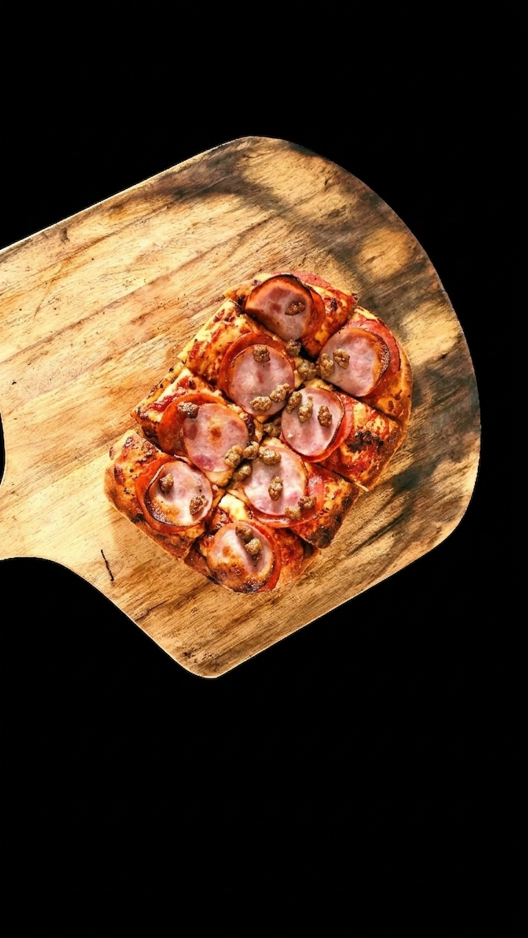 Doctor-prescribed triple meat therapy: Pepperoni, Canadian bacon, and Italian sausage piled high. Heavy-duty protein intervention. Choose New York style or Deep Dish.